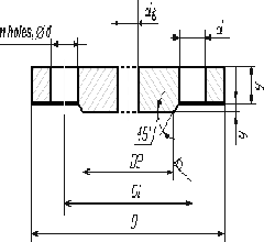 PN, МПа | DN, мм | D, мм | D1, мм | dв, мм | dн, мм | D2, мм | Число отверстий, n | d, мм | h, мм | h+b, мм | b, мм |
