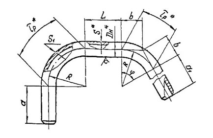 Отводы по ОСТ 34.10.751-97 применяют для изменения направления потока рабочей среды в трубопроводе тепловых электростанций при рабочих параметрах Р≤2,2МПа и Т≤425˚С.