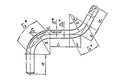 Конструкция и размеры гнутых колен должны соответствовать указанным на чертеже 1 и в таблице 2.: