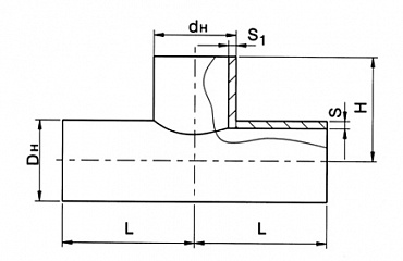 Пример условного обозначения сварного переходного тройника с накладкой диаметром корпуса 133 мм, толщиной стенки 6 мм и диаметром штуцера 89 мм, толщиной стенки 3,5 мм на Ру 4,0 МПа: