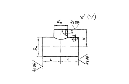 Пример условного обозначения равнопроходного тройника Dн=820 мм, S=16 мм из ст.ВСт3СП: