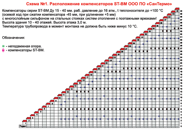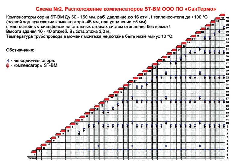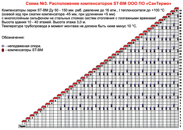 Схема №3 расположения компенсаторов ST-BM Ду 50-150 мм (с поэтажными врезками)