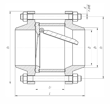 | Обратный | Углеродистая сталь ст.20 | Межфланцевое, стяжное | Вода, пар, жидкие и газообразные нефтепродукты, водогазонефтяные смеси и другие среды нейтральные к материалам основных деталей, скорость коррозии в которых не более 0,2 мм/год | до +400 0 С | У1 по ГОСТ 15150 |