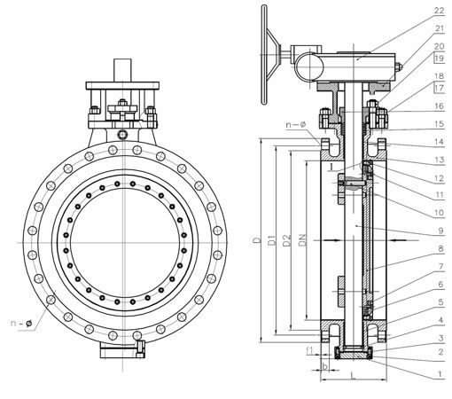 | 10 | Штырь | 2Cr13(20Х13) | 21 | Отв. фланец редуктора | A216WCB(20Л) |